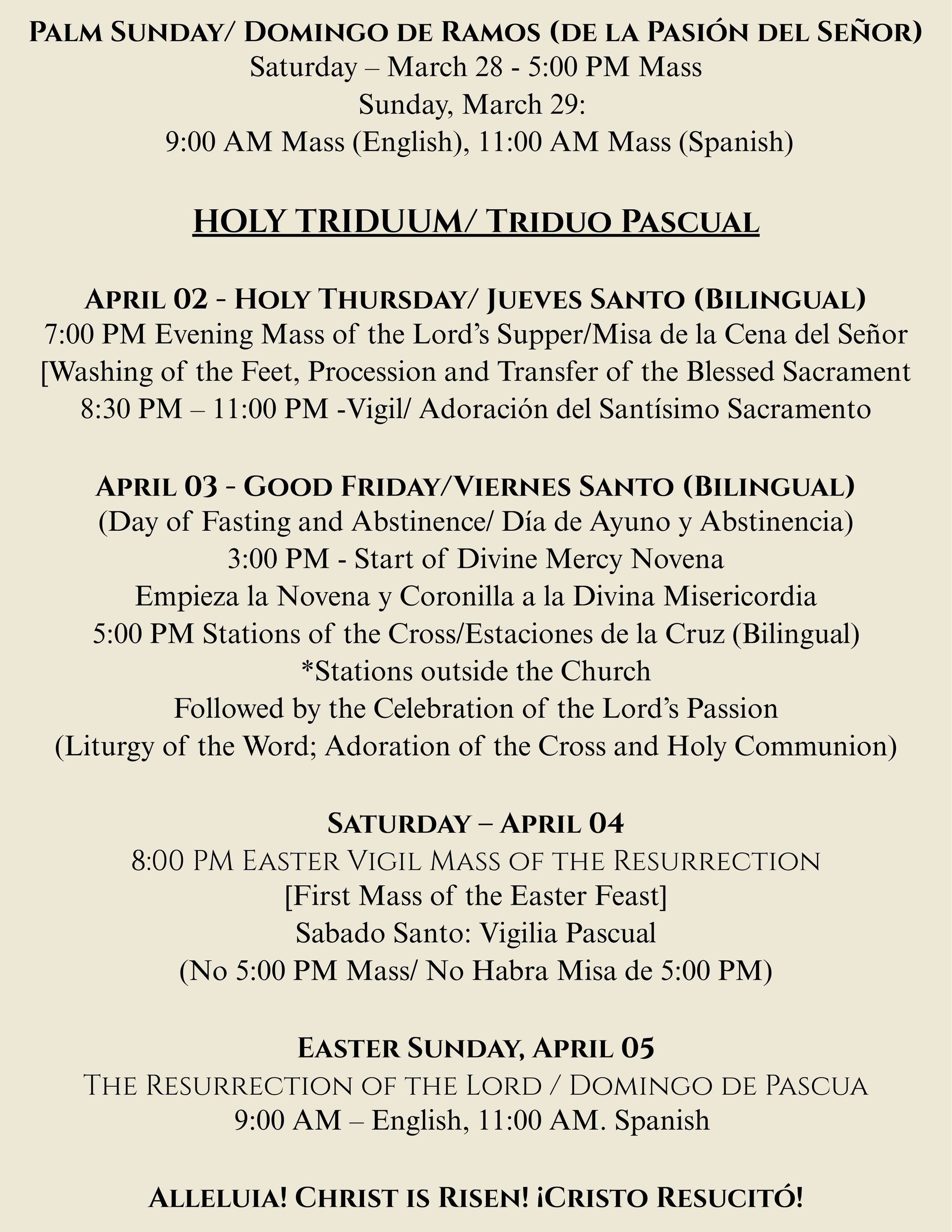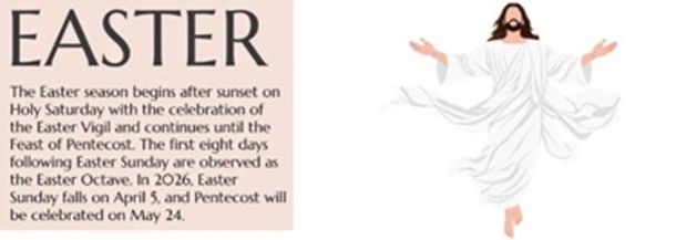 - First Communion Mass: Saturday, April 18, 10AM
