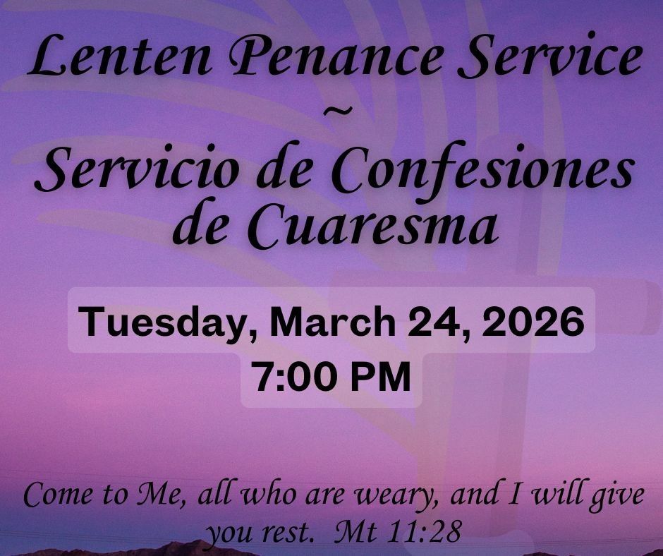 LENTEN PENANCE SERVICE: MARCH 24 - 7:00 PM