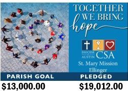 Thank you to everyone who supported our Catholic Services Appeal this year! We are so happy to announce that St. Mary parish have both met their goals set by the Diocese of Austin. Thanks to your generosity we once again qualified for a $5000 Parish Grant!